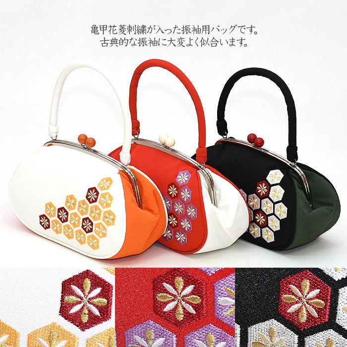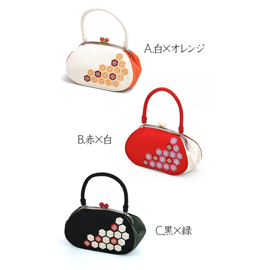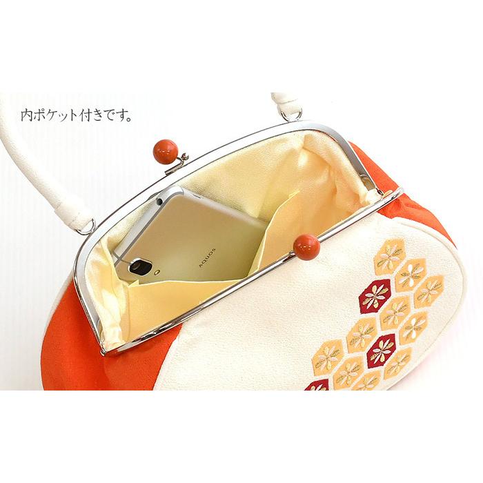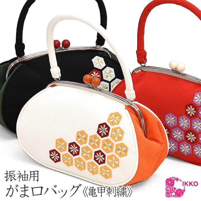 IKKO 振袖 卒業式 浴衣 亀甲花菱刺繍 バッグ がま口 ちりめん 和柄 レトロ モダン 大容量 通年 メール便・ネコポス便 bag-ss01