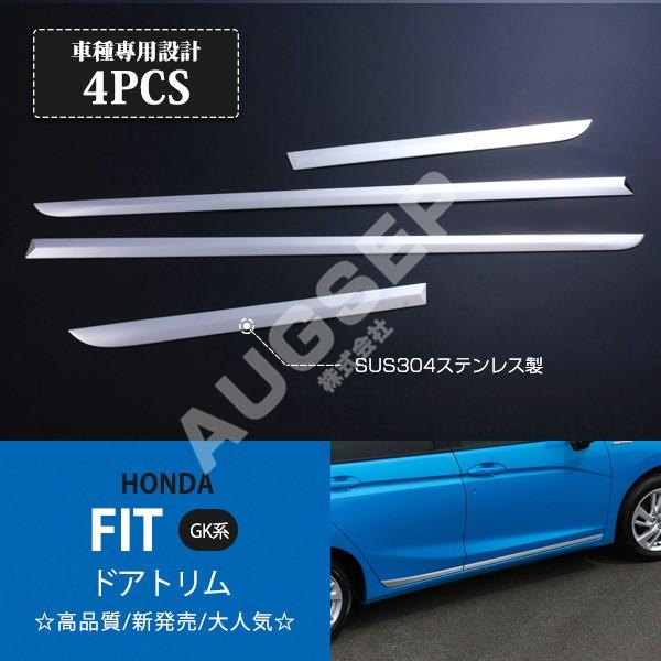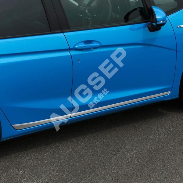 ★内容適合車種:ホンダ・フィット GK系年式:平成25年9月〜(2017年マイナーチェンジ後も対応可能)枚数:本体4枚色合:シルバー素材:ステンレス製(鏡面)★商品特徴両面テープで貼りつけるだけで簡単にスポーティに!ガーニッシュが高級感を引き立て、サイド部分見栄えが断然よくなります。ステンレス素材なので、防錆、耐熱、耐久性が優秀!車種専用設計なのでフィッテング抜群!★取付方法一度仮合わせして、位置の調整を行ってください。貼り付ける際は、接着面にアルコールに油分や汚れを十分に落として施工してください。後で強力両面テープで貼るだけの簡単取付です。キーワード:ホンダ/HONDA フィット/FIT GK H25.9〜 平成29年〜 サイドドアモール ドアパネル サイドドアガーニッシュ ドアパーツ サイドガーニッシュ サイドパーツ アクセサリー カスタムパーツ カーパーツ キズ隠し 傷防止 すり傷予防 メッキモール ドアアンダーモール カーパーツ カスタムパーツ エクステリアパーツ"} 適用範囲 車種 グレード 年式 フィット GK系 全グレード対応可能 2013年9月〜2020年2月(全年式共通) ★お車の仕様によっては、適合しないものもございます。
