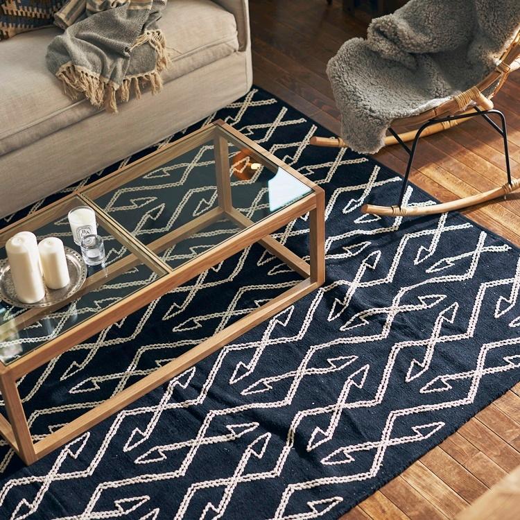 モダンから北欧まで様々なテイストの空間に取り入れやすい幾何学模様のラグです。