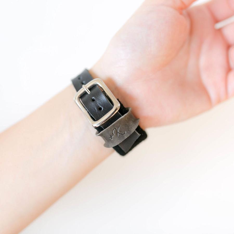 ベロアとヌメ革の2TONE腕時計 / アナログ針 / ひとまわり大きな【大】