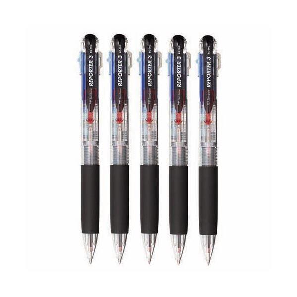 (まとめ) トンボ鉛筆 3色油性ボールペン リポーター3 0.7mm (軸色 透明) 業務用パック BC-TRC205P 1箱(5本) 〔×10セット〕[21]