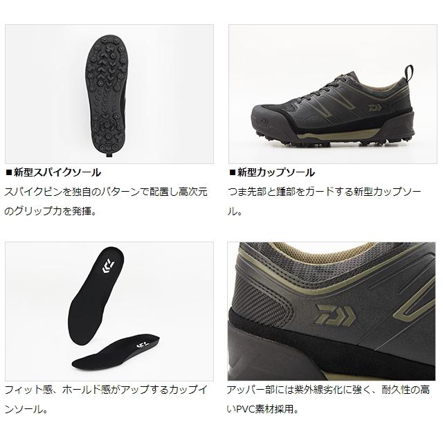 ダイワ グローブライド DAIWA フィッシングシューズ(スパイク) DS-2103 / 靴 フットウェアスニーカー感覚で履けて、機動性が高い、汎用ローカットシューズ■シューズ感覚で履けて、機動性の高いローカット仕様(ショート丈)■つま先部と踵部をガードする安心設計オリジナル新型カップソール■本体アッパー部には紫外線劣化に強く、耐久性の高いPVC素材を採用■新型オリジナルソール ・スパイクピンを独自パターンで配置し高次元のグリップ力を実現したスパイクソール。■フィット感・ホールド感がアップするカップインソール内蔵(ソール交換できません)■発売年:2022年