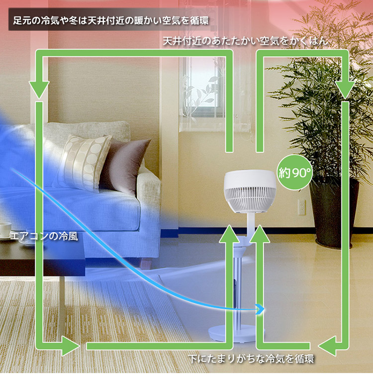 ●温度センサー搭載で常に快適な温度をキープ。●ガード部分が外せてお手入れできる全分解仕様。●3D首振りでお部屋全体の空気を撹拌。●上下・左右首振り角度が2段階に調節できて室内干しにも便利。●DCモーター搭載で、省エネ・静音・細かな風量調節12段階。定格電圧/周波数:AV100V 50/60Hz消費電力:20W主な材質:[本体]ABS [羽根]ABS電源コード長:約1.6m風速:360m/360m(min)自動左右首振り角度:約60°/約90°(2段階)自動上下首振り角度:約60°/約90°(2段階)羽根:羽根径18cm/3枚羽根入切タイマー:1/2/3/4/5/6/7/8h(入タイマー後無操作3時間自動オフ)自動オフタイマー:最後に運転の操作をしてから8時間後風量切替:12段階その他の機能:メモリー機能、DCモーター搭載、フルリモコン、組立不要完成品【商品スペック】本体サイズ(高さ×幅×奥行):約73.5〜78(上向時)×27×27cm全高:約73.5〜78cm(上向時)電源コード長さ:約1.6m本体重量:約3.9kg羽根径/羽根数:18cm/3枚羽根