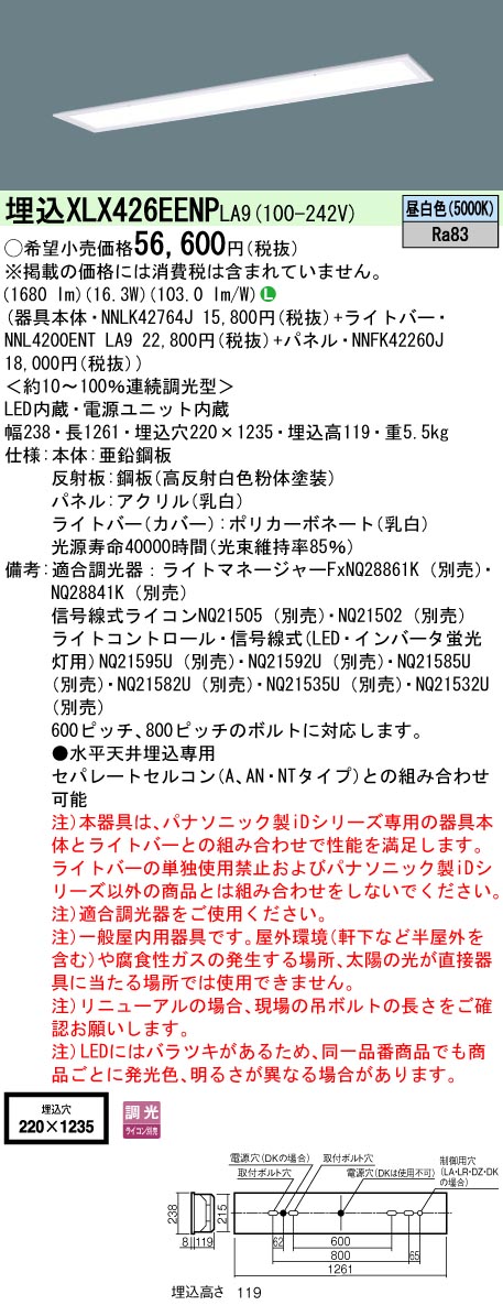 XLX426EENPLA9 パナソニック iDシリーズ 調光 セット品内訳( NNLK42764J NNFK42260J NNL4200ENTLA9 ) 法人様限定販売
