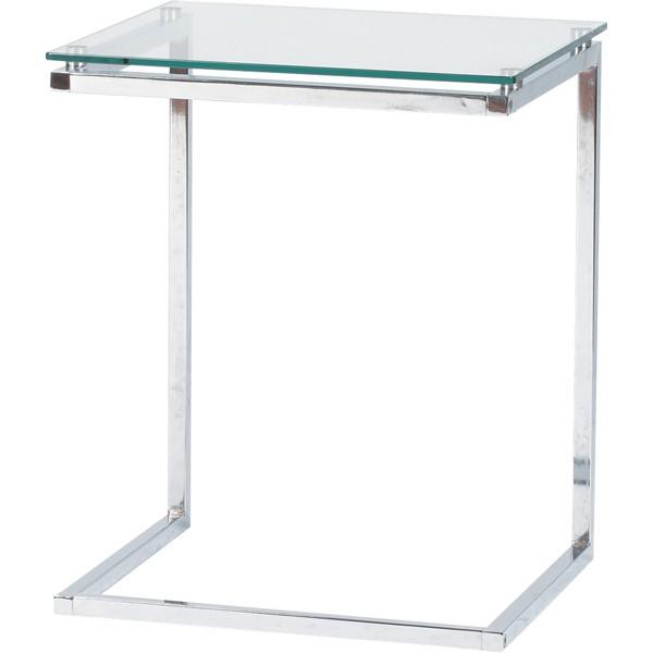 ガラスサイドテーブル 幅45cm スチール スリム ナイトテーブル ベッドサイドテーブル ソファーサイドテーブル 北欧 インテリア クリア