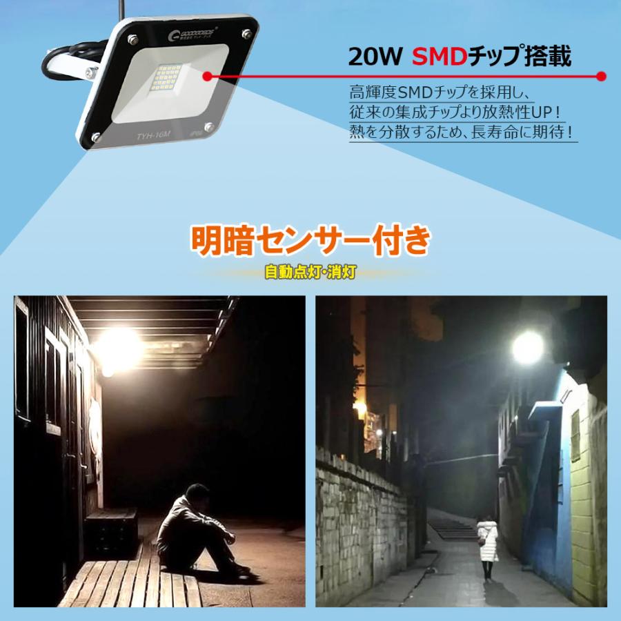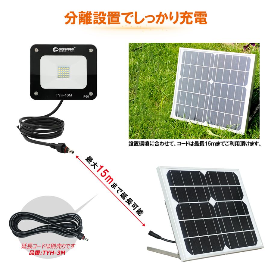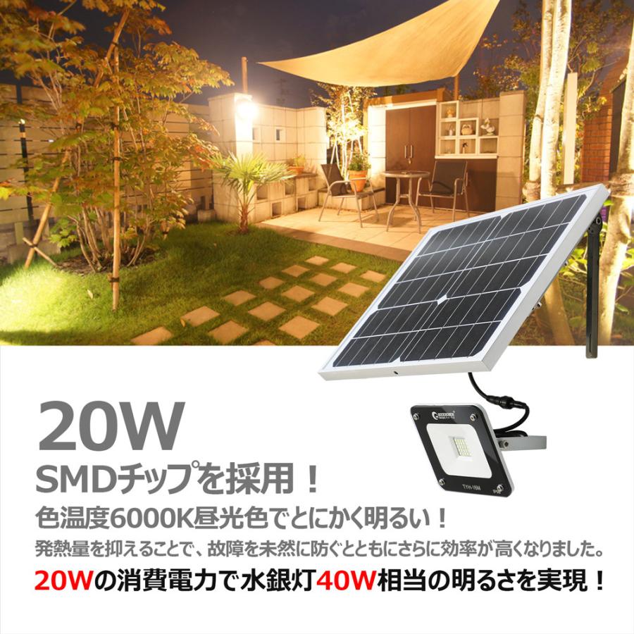 SALE GOODGOODS ソーラーライト 屋外 明るい ガーデンライト LED投光器 充電式 20W ソーラー投光器 薄型 電池交換式 昼光色 庭園灯 防災グッズ TYH-16M-N