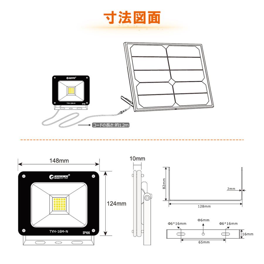 実用新案登録品番:TYH-16M-N LED Power:20W光源:昼光色全光束:約2000LMコードの長さ:ライトTK-16ML分:約1.2m、ソーラー発電システムTYH-5JB分:約25cmサイズ:ライト;W148*H124*D10 mmパネル:W175*H280*D16mm点灯時間:約6時間以上JANコード:4571461862637セット内容:LEDライトTK-16ML、ソーラーパネルTYH-5JB、18650型充電池LDC-361A*5本、 取扱説明書 、保証書▼検索キーワード:GOODGOODS 実用新案登録 LEDソーラー投光器 太陽光発電 電気代0円 電池の取り替える可能 防水性能アップ ガーデンライト 玄関 防犯 防災グッズ ソーラーライト 屋外 20W 200W相当 2200ルーメン 明暗センサー 太陽光発電 地震災害・停電対策 非常用ライト 防犯ライト ソーラーライト アウトドア 庭 駐車場 ベランダ 緊急用 街灯 外灯 TYH-16M-N