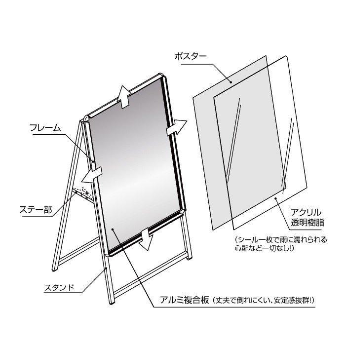 お手軽なA型看板、飲食店にオススメです。屋外使用OK! 四方開閉式で中身のポスター交換が簡単、 いろいろな内容を切り替えます! (一例:昼はランチ、夜は晩酌セットとコースで交替して使えます。) 様々のサイズが取り揃えてます、お気軽にお問い合せ下さい。 看板表示面製作のおすすめ商品です! A型看板 グリップA シルバー サイズ:C1 両面 (立て看板 / スタンド看板 / A看板 / 店舗用看板 / 屋外看板 / ポスター入れ替え式 /四辺開閉式/ 両面看板 / 前面開閉式) ポスター入れ替え式 A型看板 A型看板 スタンド看板 両面 /立て看板 / スタンド看板 / A看板 / 店舗用看板 / 屋外看板 /黒/KC1-D"} 色 ブラック サイズ W496mm×H1285mm×D660mm 原稿サイズ W450mm×H900mm 表示画面 W390mm×H840mm 重量(kg) 7.65 材質 本体:アルミ 面板:アルミ複合板 商品が到着するまでの目安は以下よりご確認下さい。