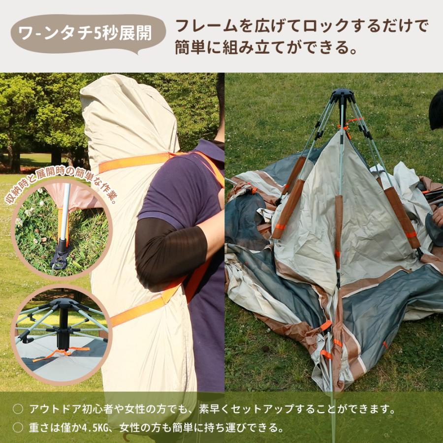 テント ワンタッチテント レジャーシート付き 4-6人用 耐水圧2000mm UVカット折りたたみコンパクト 防水・防風・通気性抜群 前後ダブルドア 収納袋付き 2023最新