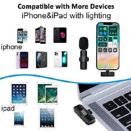 説明: Wireless Mini Lavalier Microphone for iPhone iPad Plug and Play 2.4G Ultra-Low Latency Noise Reduction Lapel Microphone 10H Long Working Time for Youtubers, Vloggers, Interview,Lectures PLUG & PLAY - No Adapter/additional APP/ Bluetooth needed,item includes clipped wireless microphone and receiver(USB-C port), just power on the microphone and plug the receiver on your phone, they will automatically connect. Easy for you to play with YouTube/Facebook Live Streaming, TikTok, Vlog, Blog, Podcast, Zoom, Interview and other video recording. Real-time Crystal Voice Syncs with Noise cancellation - Using real-time auto-sync technology, super low latency(5-10ms), will not cause the audio and picture to be out of sync which extremely reduce the video post-editing.Built-in noise reduction chip, get crystal clear audio(44.1~48kHz stereo CD quality). 60FT AUDIO RANGE & 6H WORKING TIME - Built in large capacity rechargeable battery and low power chip, this mini wireless lavalier microphone provide more than 6 hours of battery life and only 2 hours to get full charged.Highly sensitive microphone which perfect for capturing audio from 60ft far away. Perfect for Vlog/Youtube/Facebook/Tiktok Live Stream - Easy charging,long battery life,mini size,high quality audio.From now on, say goodbye to messy cables and poor noise cancellation to enjoy your vlog life everywhere anytime. ONLY COMPATIBLE WITH iPhone iPad - WARNING:this device is only for USB-C device,if you need for iphone/ipad,please choose the Variation Lighting