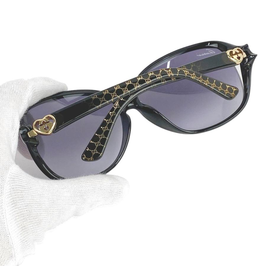 ■新同■ グッチ サングラス ハート 眼鏡 眼鏡 GG マーク ブラック ゴールド 【173561】