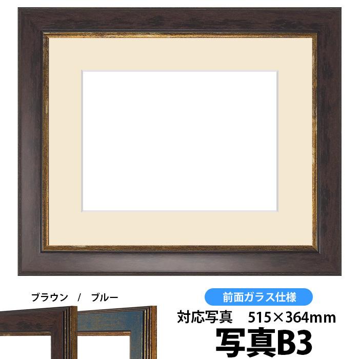 額縁 フレーム 写真用額縁 9650/ブラウン B3(515×364mm)専用 前面ガラス仕様 マット付き