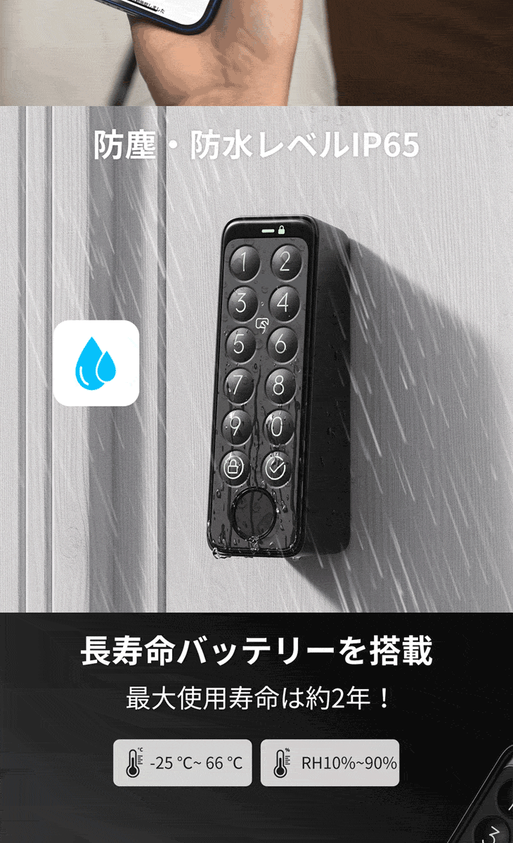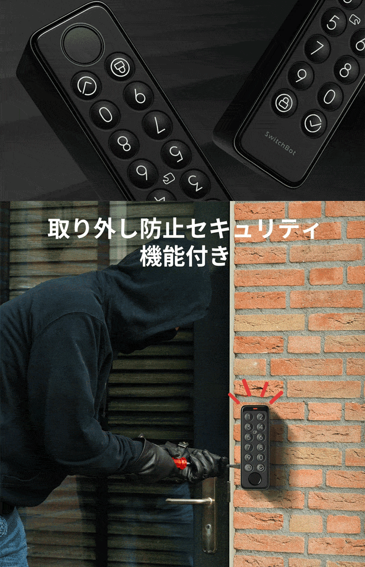 キーパッド:指紋認識なし、パスワードで解錠可能。