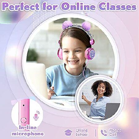 Kofarrten キッズヘッドホン ベアイヤーヘッドフォン 85dBボリューム限定 ガールズ 3.5mmジャック オーバーイヤー ガールズ マイク付き 学校 誕生日 ユニコーン