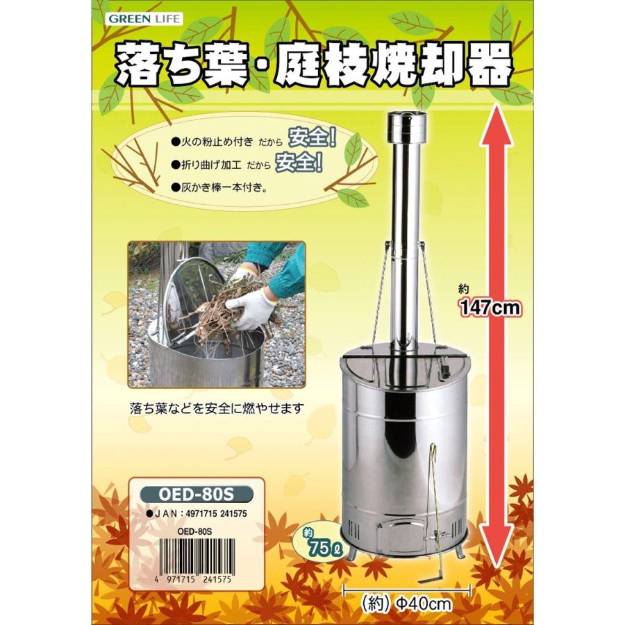 グリーンライフ 家庭用ステンレス 落ち葉庭枝焼却器 OED-80S [OED−80S 落ち葉焼却器]