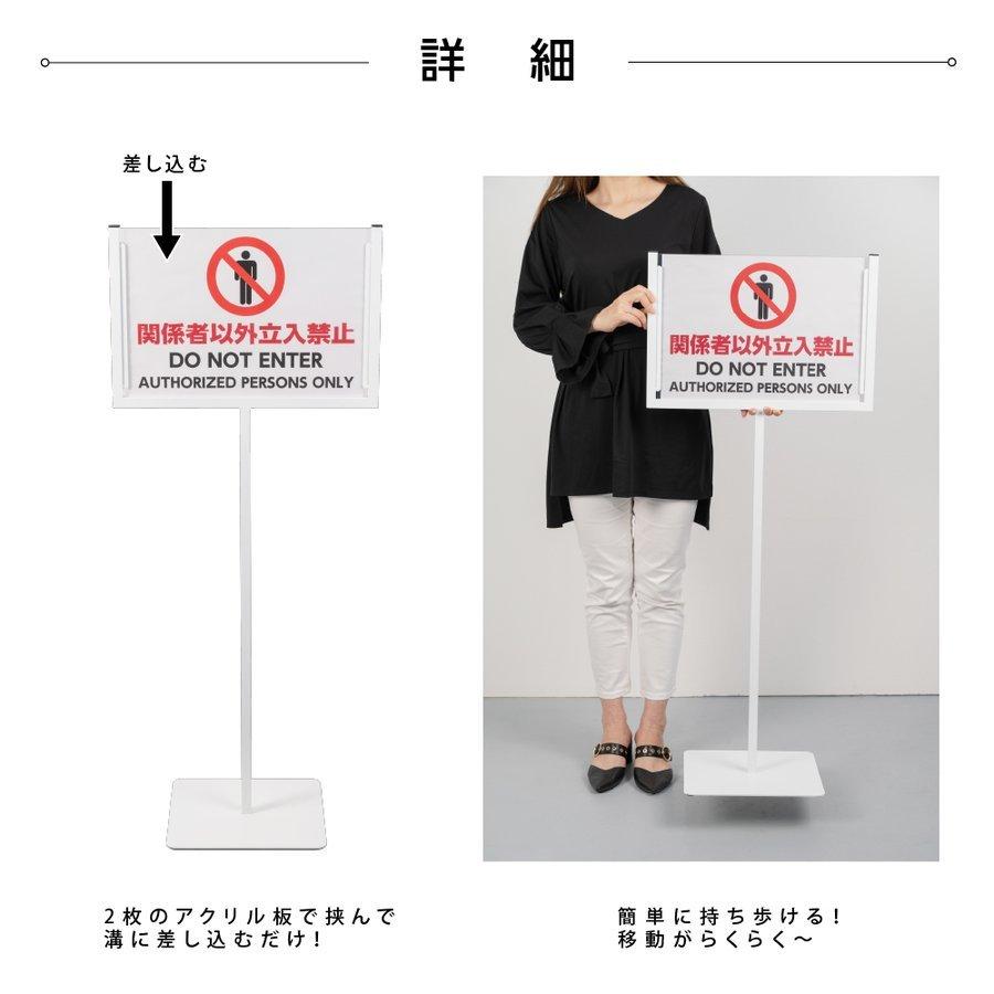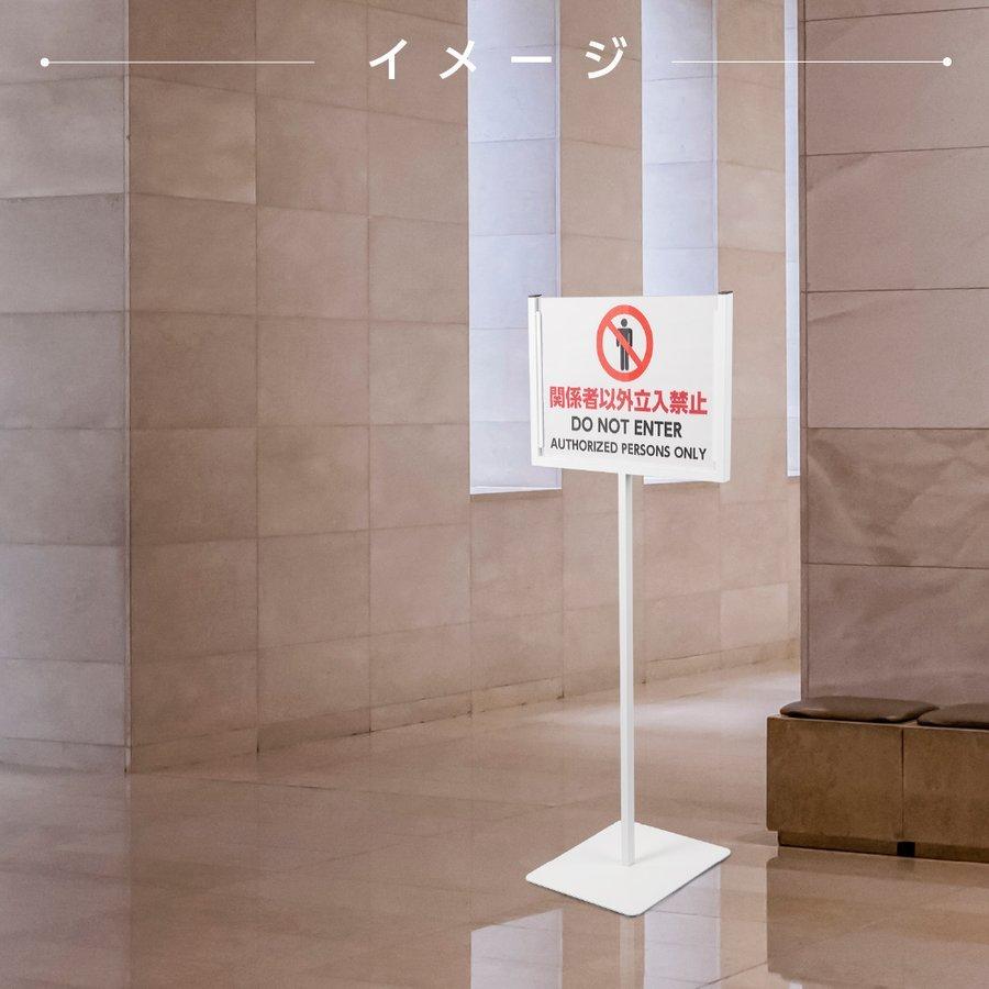 公共施設案内、展示会場、社内案内、デパート、催事場、会議場、結婚式場などの施設案内、指示用途に応えする、ヒット商品となります。軽量で簡単に設置、移動ができ、ポスターの印刷サイズはA3サイズで、自分で簡単にプリントすることができ、または、自由に展示内容を変えられ、手軽に取り換え、というメリットで、多く人々に用いられている。 スタンドサイズ:W300×H1120mm A3横サイズ:W475×H325mm素材:スチール白塗装仕上げ重さ:4.3kg"}