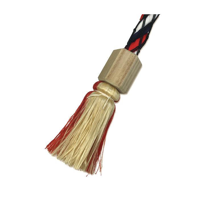 鈴緒(すずお)を神棚やお宮、社殿の前に吊り下げて、本坪鈴(ほんつぼすず)を鳴らし参拝するときに使用する紐です。