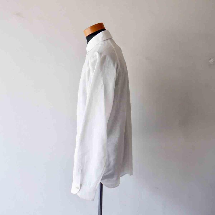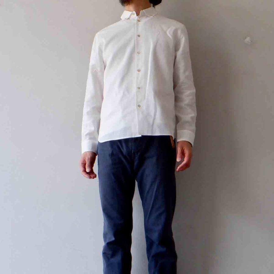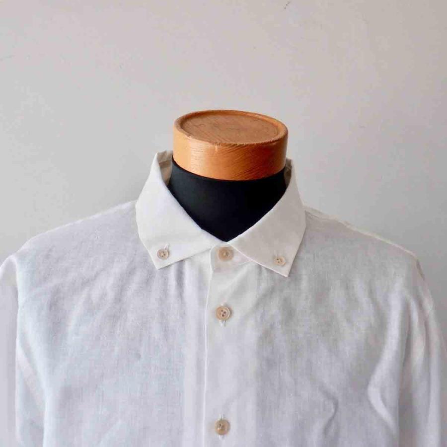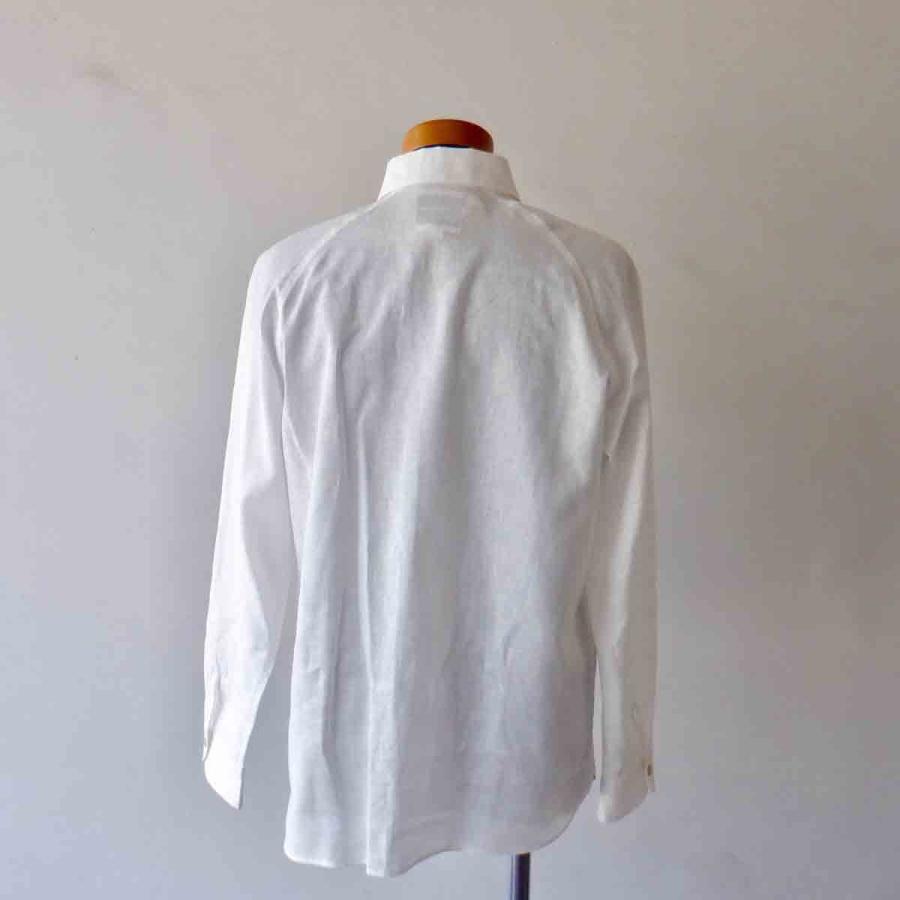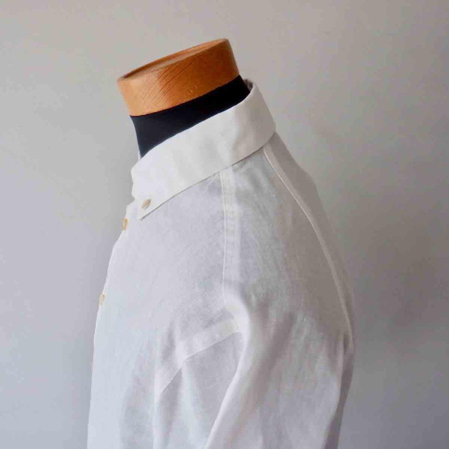 Re made in tokyo japan アールイーリネン/ポリエステルの上品で雰囲気のある、軽快さを感じさせる素材が魅力。前はセットイン、後はラグランになった、「スプリットラグラン」仕様。ホリゾンタル気味のボタンダウンされた衿。胸ポケットも排され、シンプルにシルエットと素材で勝負した潔いB.D.shirt。きっとshirt好き、白shirt好きの方なら気に入って頂ける1着に仕上がっていると思います。いつもながら、こだわりのある「上品な」カジュアルさ。お勧めのshirtです。画像ではsize Mをメンズマネキン(M)に着用させています。私(177cm、63kg)にはsize Mが「ジャスト」です。素材 : linen 55% , polyester 45%color : white※モニターの発色の具合によって実際のものと色が異なる場合がございます。size :S(肩幅43cm、身幅49cm、袖丈59cm、着丈67cm)M(肩幅45cm、身幅52cm、袖丈60cm、着丈69cm)L(肩幅47cm、身幅55cm、袖丈61cm、着丈71cm)made in JAPAN