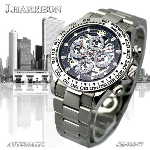 ☆J.HARRISON 機械式多機能両面スケルトン時計 JH-003SB