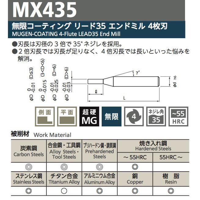 【送料無料】 NS 日進工具 MX435-12 無限コーティング リード35 エンドミル 4枚刃 08-00085-01200