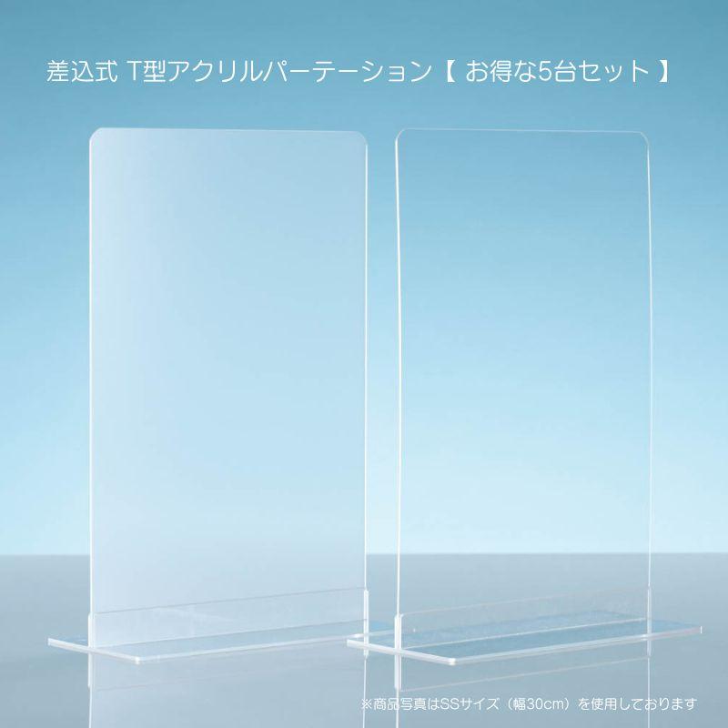 T型差込式アクリルパーテーション SSサイズ 幅30センチ お得な5台セット 飛沫防止 ウイルス 感染対策 アクリルパネル