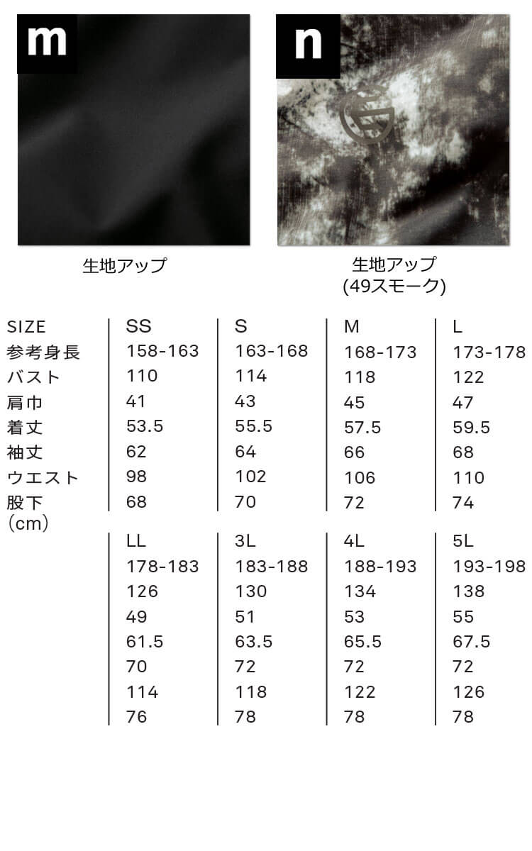 [カラー]47アッシュモカ・48ソリッドブラック・49スモーク[素材]表地:ポリステル100%中綿:ポリステル100%裏地:ポリステル100%[特長]〇マジックテープ/袖口・前立てヒヨク・フードアジャスター・裾〇コイルファスナー/左胸・両脇・パンツ右後・前立て・腰割れ部※取り寄せ商品、在庫の有無と納期は後日連絡