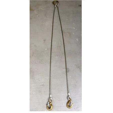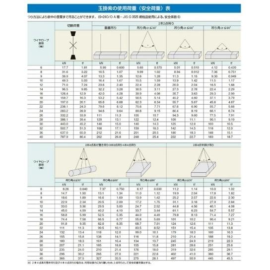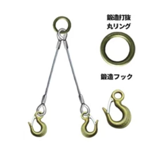 ワイヤーロープ加工品(コンドーテック製) コンドーテックにてリング・ワイヤー・フックを加工して出荷します。JISロック止めワイヤーとリングとフックをセット。建築・土木の現場や各種工場での玉掛け作業に。【仕様】■ロープ経:9mm■長さ:3.5m■両シンブル入、2点吊りセット■使用荷重は画像(表)にてご確認ください。(吊り角度によってかわります。)【使用部材】■JISロック止めワイヤー6×24 裸■2Tリング φ19×内85■1t鍛造フック※写真は代表写真を使用しています。【取扱いサイズ】ーーーーーーーーーーーーーーーーーー★2点吊りワイヤー、4点吊ワイヤー、下記サイズ取り揃えています!6mm×1m 6mm×1.5m 6mm×2m 6mm×2.5m6mm×3m 6mm×3.5m 6mm×4m9mm×1m 9mm×1.5m 9mm×2m 9mm×2.5m9mm×3m 9mm×3.5m 9mm×4m12mm×1m 12mm×1.5m 12mm×2m 12mm×2.5m12mm×3m 12mm×3.5m 12mm×4m★3点吊りや、その他サイズも製作可能です!お気軽にご相談下さい!お見積もりいたします!"}