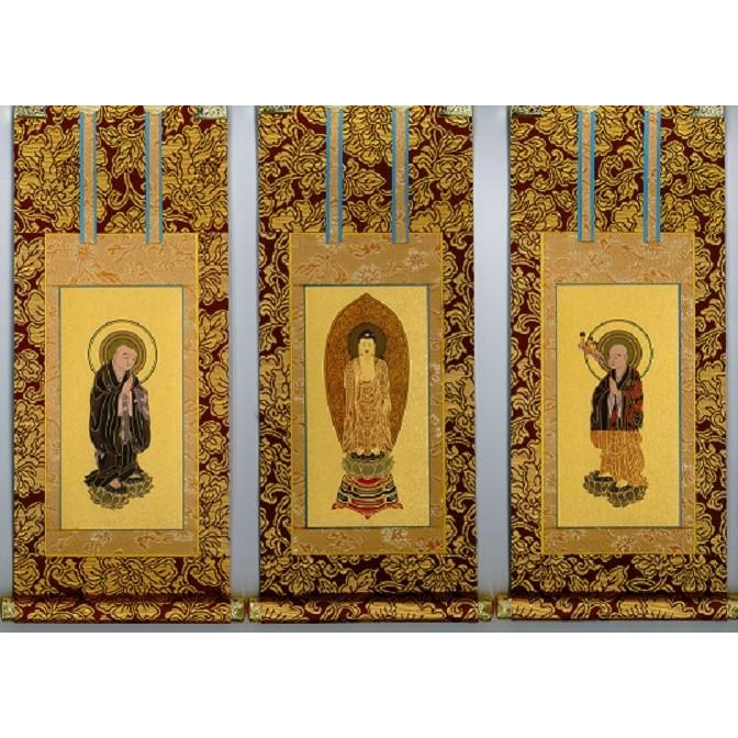 掛軸 仏具 茶表装掛軸 浄土宗 極豆代 3幅セット 掛け軸