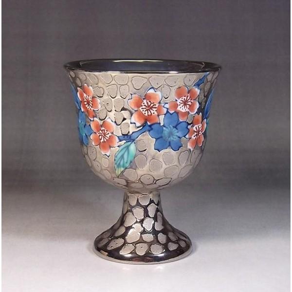 有田焼 染錦プラチナ彩桜絵馬上杯|陶芸作家 藤井錦彩 作