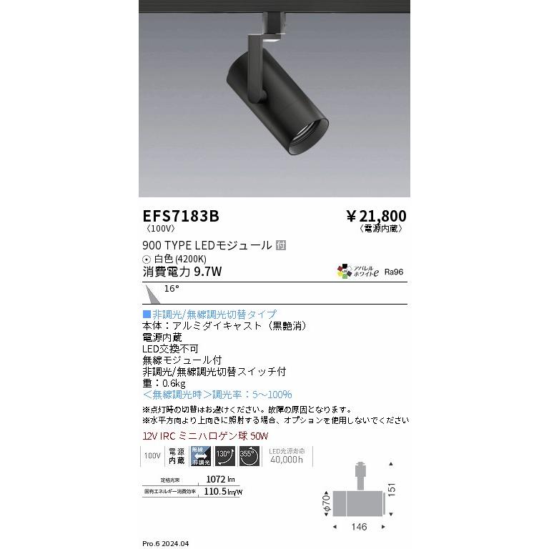 施設用照明器具 遠藤照明 スポットライト EFS7183B 検索用カテゴリ360 【LED照明】 【白色】 【非調光】 【調光可】 【中角タイプ】スリム&シンプルデザインを極めた高性能スポットライト