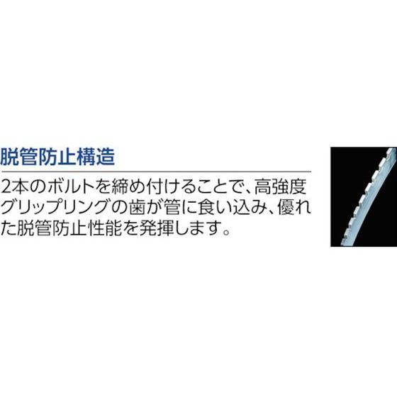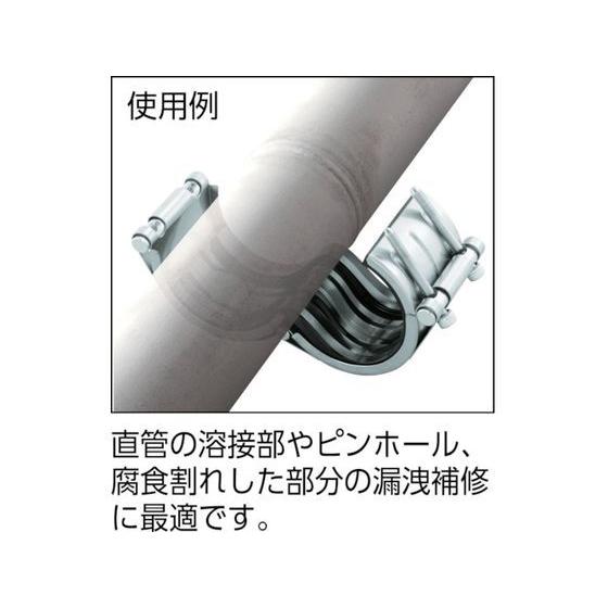 【商品説明】●直管の溶接部やピンホール、腐食割れした部分の漏洩補修に最適です。●流体を止めることなく作業できます。●軽量で一体構造のため、部品の脱落が無く安全に取付できます。【仕様】●型番:C-50EC ●呼び径A:50 ●呼び径B:2 ●ケーシング幅(mm):75.5 ●ゴムリップ間隔(mm):40 ●標準トルク値(N・m):10 ●締付け六角穴付ボルト穴サイズ(mm):6 ●適用流体:水、温水、空気、薬品 ●適合配管:配管用炭素鋼鋼管/VLP/PLP/ステンレス鋼管/鋼管サイズのPE管 ●流体温度:−30〜100℃ ●使用圧力:液体/1.0MPa、空気などの気体/0.7MPa ●日本水道協会認証品 ●ケーシング:ステンレス(SUS304) ●ボルト:クロモリ ●ゴム:EPDM