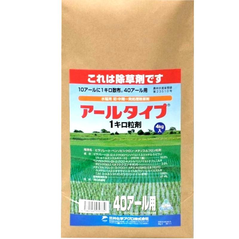 ■仕様・農林水産省登録番号:第23510号・有効成分:ピラゾレート10.0%、ベンゾビシクロン2.0%、メタゾスルフロン0.60%・性状:類白色細粒・用途:除草剤・剤型:粒剤・内容量:4kg・製品サイズ(mm):幅×奥行×高さ:170×140×300■商品説明・メタゾスルフロンによりノビエから多年生雑草まで幅広い雑草に効果・SU抵抗性雑草にも高い効果・ピラゾレートとベンゾビシクロンの共力効果により、ホタルイに対して安定した効果・田植同時も可能※品質向上のため予告なく仕様を変更する場合がございます。パッケージのリニューアル等につき、商品画像が異なる場合がございます。商品画像の色合いは、画像処理上、若干異なる場合がございます。※本商品は、商品特性上、返品をお受けする事ができません。