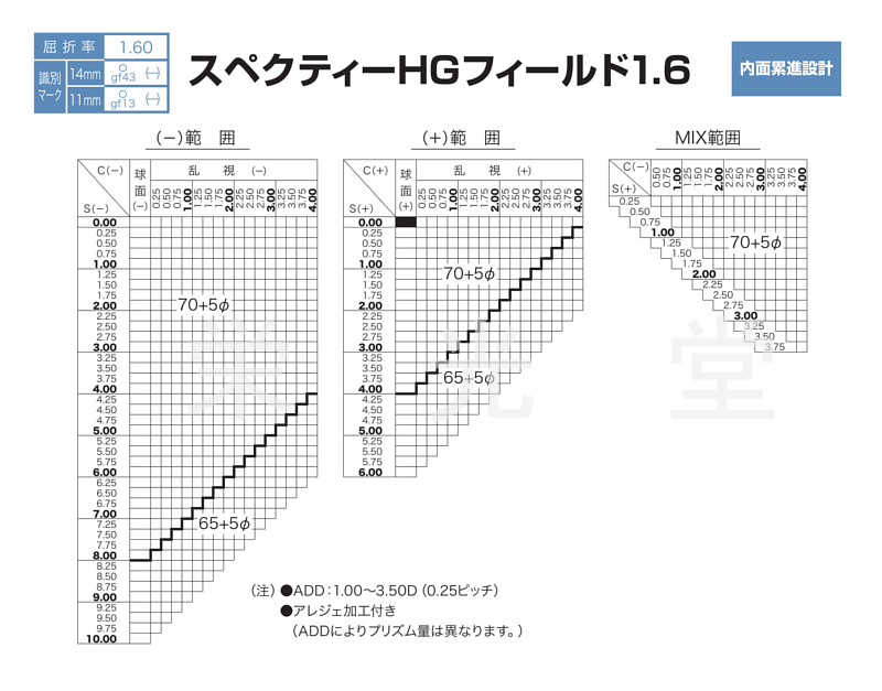 累進帯長14mmタイプ:1.00〜3.50(0.25 とび)