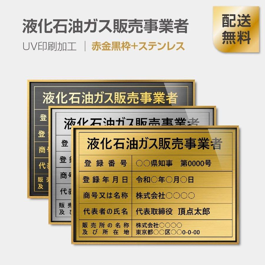 液化石油ガス販売事業者証 選べる額の色 ステンレスカラー 書体種類 520×370mm uv印刷 撥水加工 錆びない 法定サイズ 短納期(l0736-eksk)