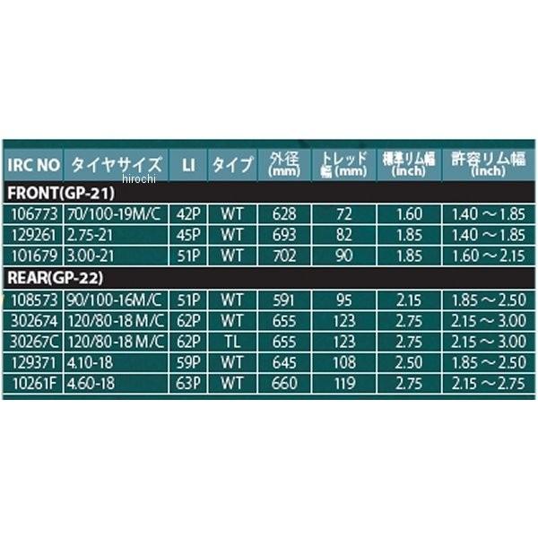 30267C 井上ゴム工業 IRC GP-22 120/80-18 62P TL リア JP店