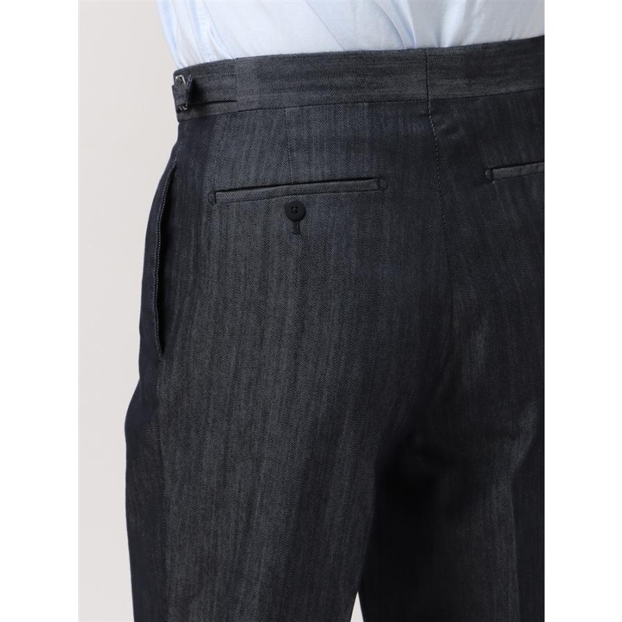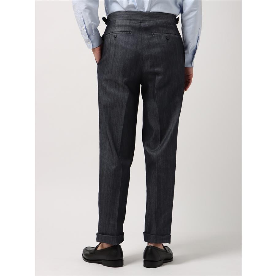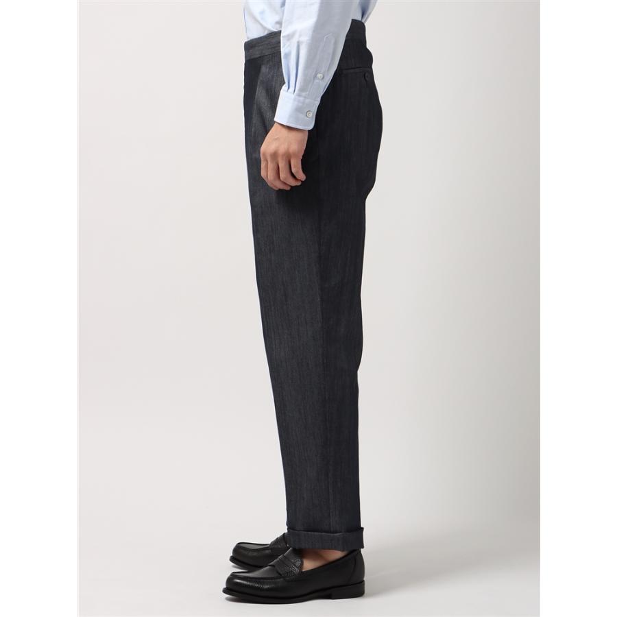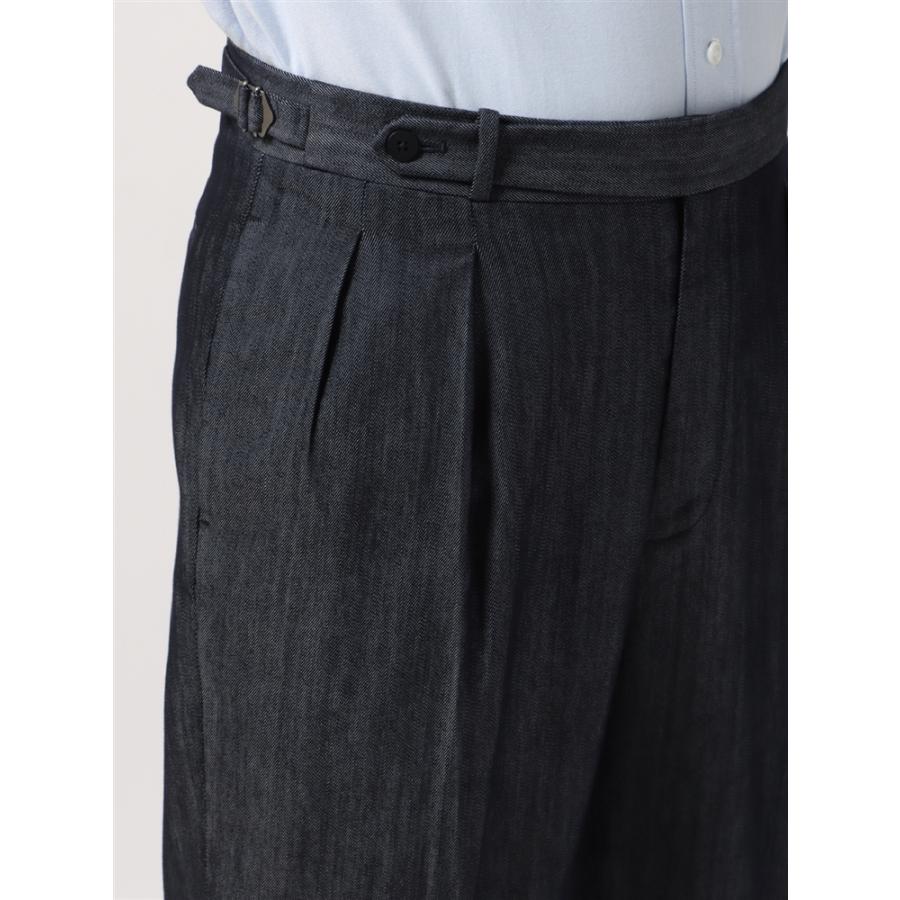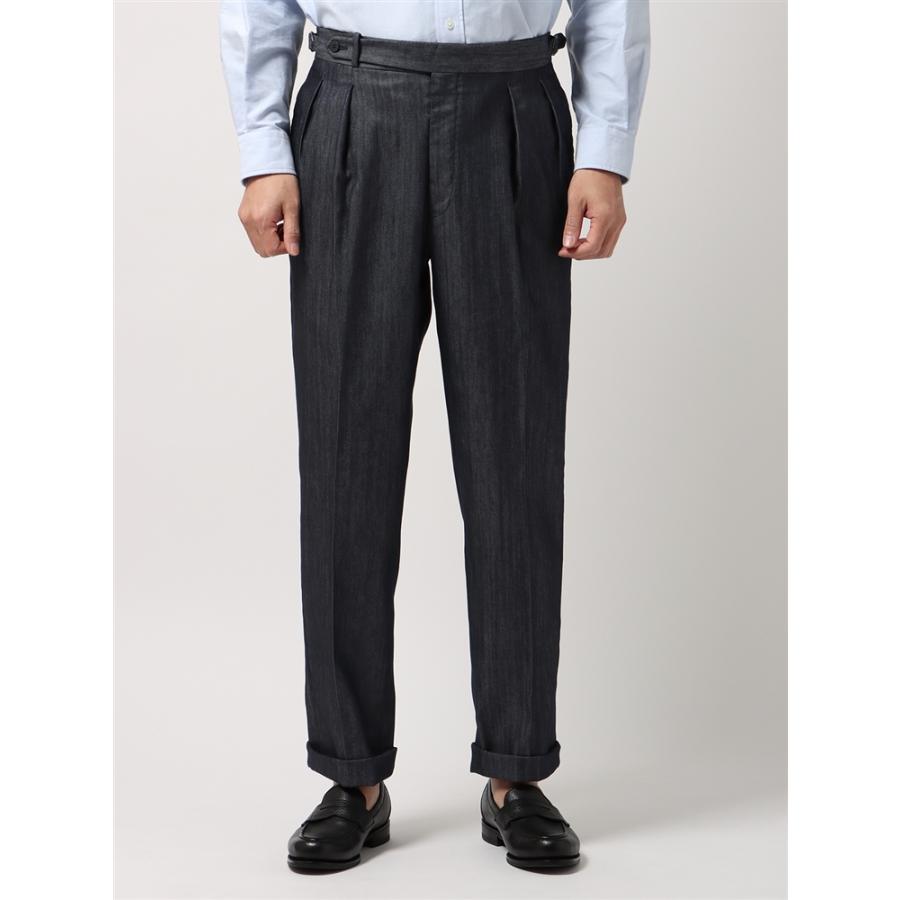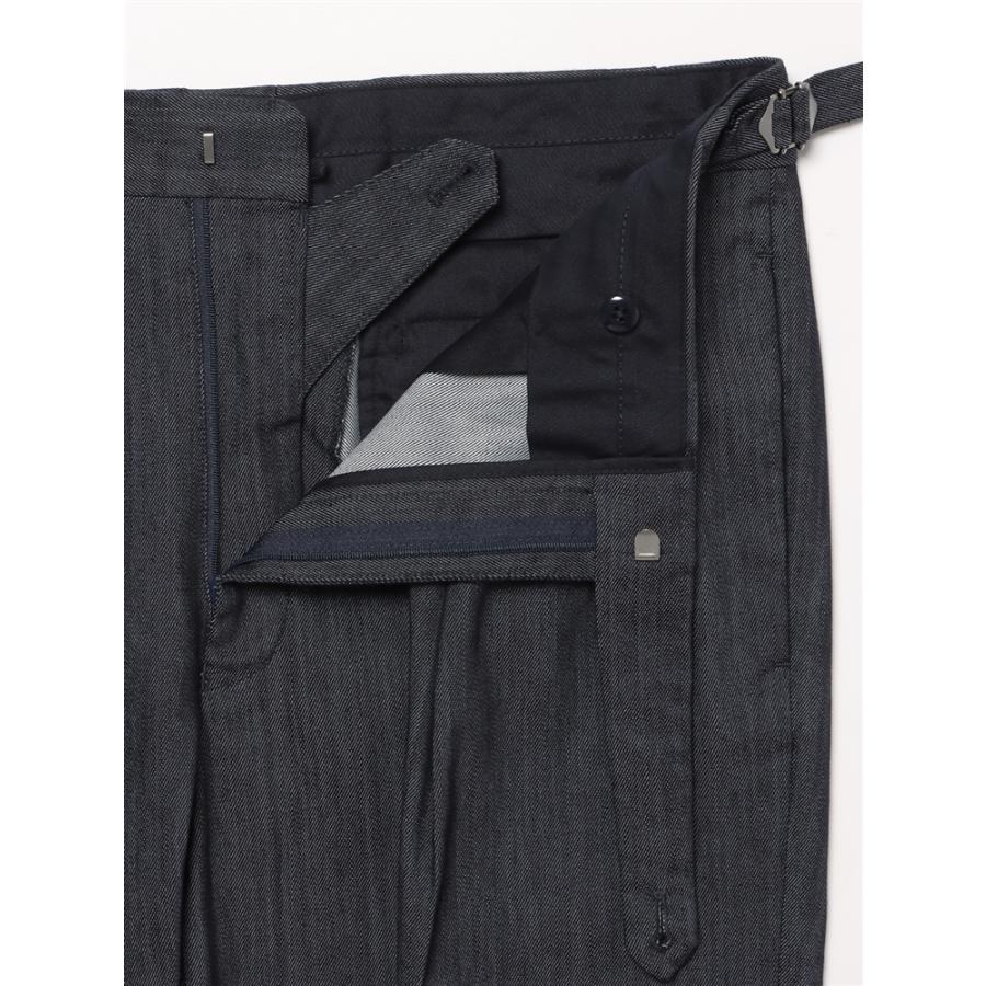 SALE価格【スーツスクエア】タックセミワイドストレートパンツ ウォッシャブル SOLOTEX デニムライク コットン 無地 ネイビー