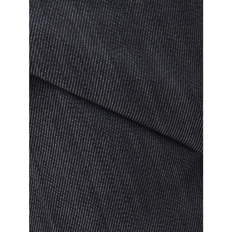 経糸にコットン、緯糸にはバネのような分子構造を有する繊維「SOLOTEX(ソロテックス)」を使用。心地よいストレッチ性がありながら、形態安定性にも優れているため、見た目よりも柔らかな手触りに◎ 色落ちしない染料を使用することでデニムライクな風合いながら色合いがフェードせず、クリーンな表面感をキープ出来ます。