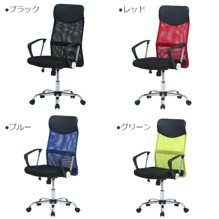 チェア チェアー ハイバック オフィスチェア メッシュチェア 高さ調節機能付き 肘付き 両肘付き キャスター付き ブラック ブルー グリーン レッド