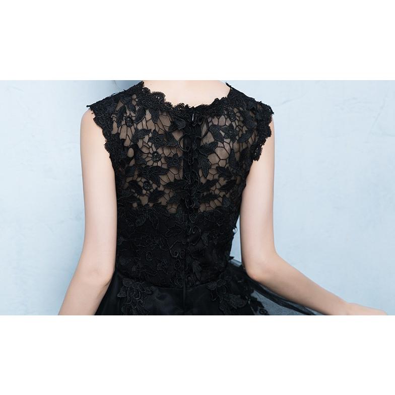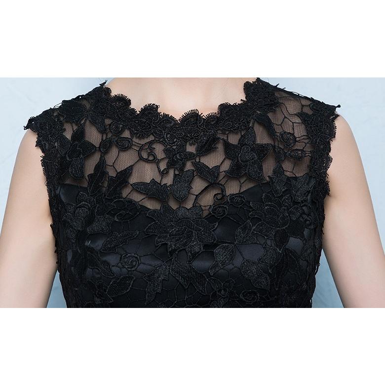 パーティードレス ワンピース ミディ丈 ひざ丈 フィッシュテール ノースリーブ フォーマル 花柄 レース フレア Aライン お呼ばれ セクシー 黒 大きいサイズ 3l
