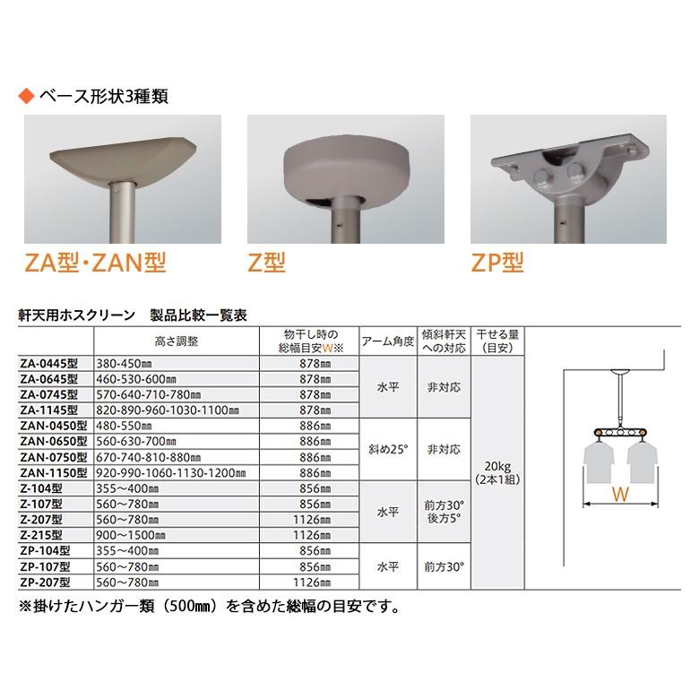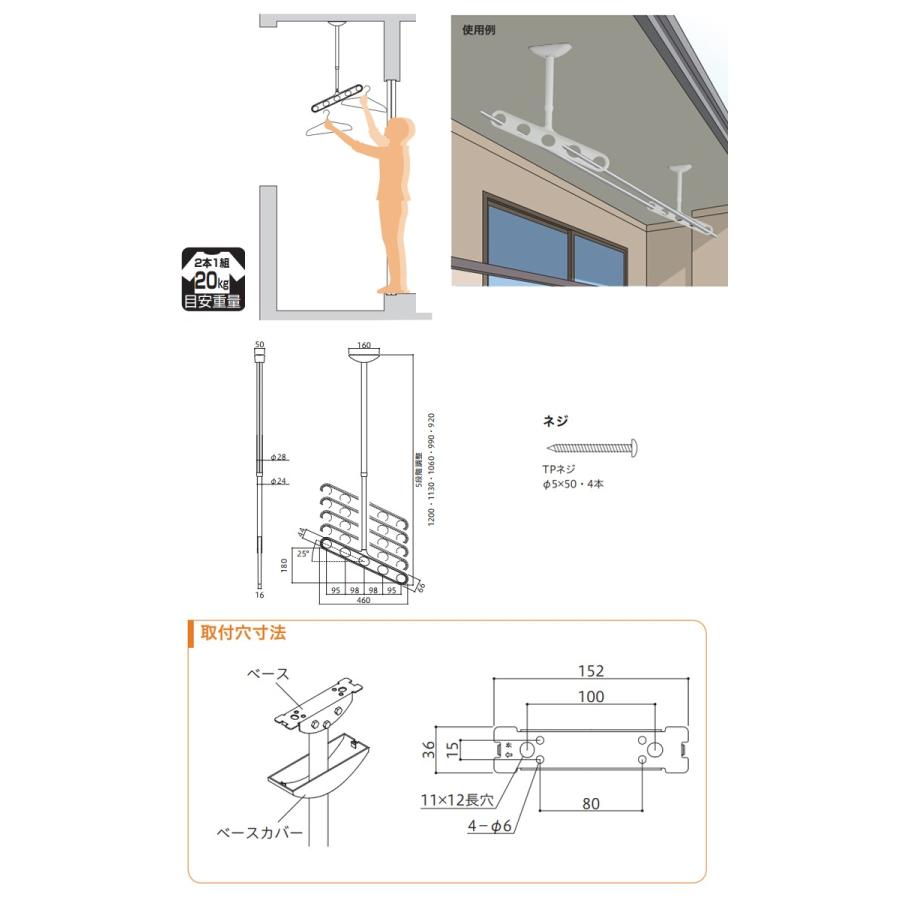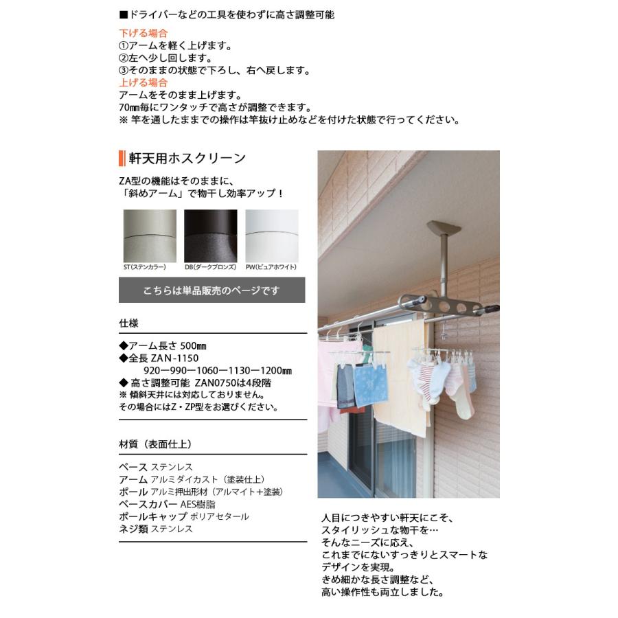 仕様:◆アーム長さ/500mm◆全長/920-990-1060-1130-1200mm◆高さ調整可能(ZAN-0450は2段階、ZAN-0650は3段階、ZAN0750は4段階、ZAN-1150は5段階)材質(表面仕上):ベース/ステンレス、アーム/アルミダイカスト(塗装仕上)、ポール/アルミ押出材(アルマイト+塗装)、ベースカバー/AES樹脂、ボールキャップ/ポリアセタール、ネジ類/ステンレス目安重量:20kg(2本1組)革新的なデザイン性ときめ細かな操作性を両立人目につきやすい軒天にこそ、スタイリッシュな物干を…そんなニーズに応え、これまでにないすっきりとスマートなデザインを実現。