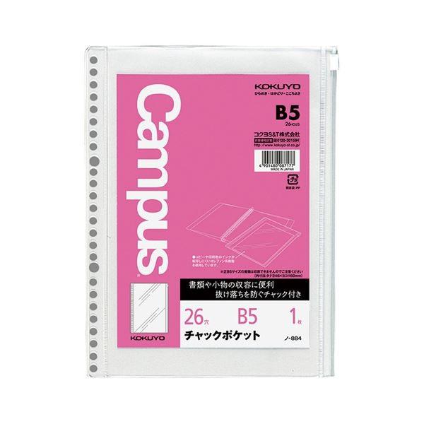 (まとめ)コクヨ ルーズリーフ用チャックポケットB5 26穴 丸穴 ノ-884 1セット(5枚)〔×5セット〕