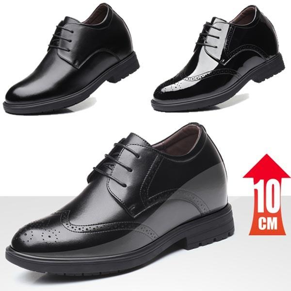 本革のビジネスシューズ!!外からは通常のシューズと変わらないのが魅力的!スーツをカッコよく着こなす脚長スタイルを実現してくれます!!・サイズ:24.0~27.0cm(0.5cmずつ)・カラー:ブラック・タイプ:ウィングチップ、プレーン、エナメル・素材:外)本革・アウトソール+インソール(約):10cm"}