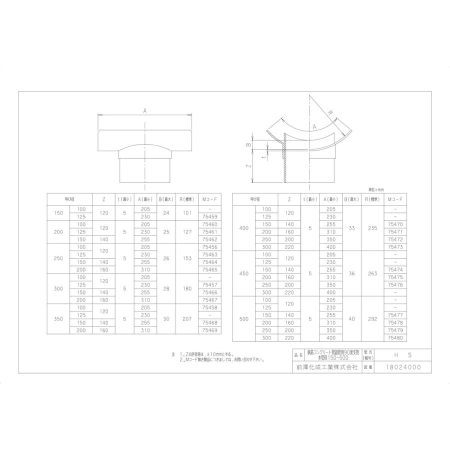 HS400-250副管用90度支管ヒューム管用 ・品番:HS400-250・呼び径:400-250"}