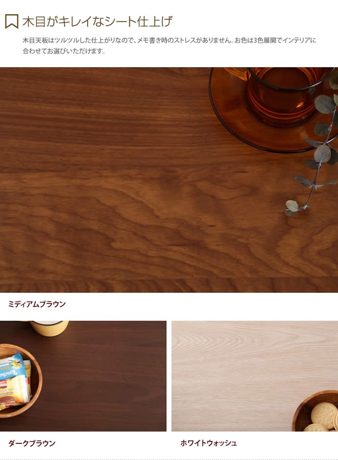 | 材質 | 天板:5mm強化ガラス、合成樹脂化粧パーティクルボード 引出前板:一部天然木、合成樹脂化粧パーティクルボード |
