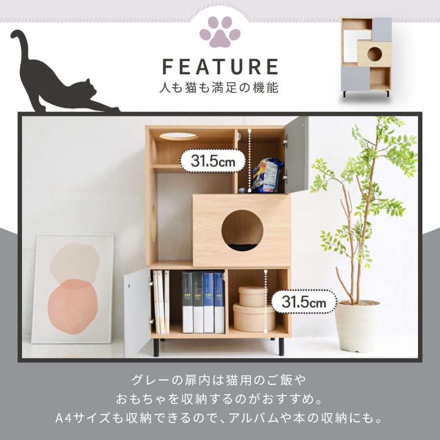 猫 家具 おしゃれ 収納棚キャットウォーク 棚ペット用品 収納 キャットクローゼット 猫用トイレ 隠せる 収納ラック キャットタワー 幅 70 高さ110 Pisica
