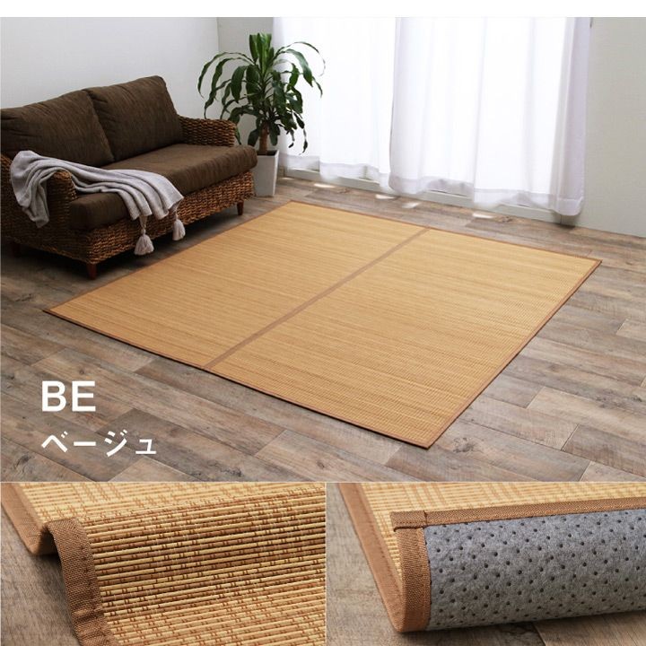 竹 ラグ カーペット 裏地付き 天然素材 丈夫 抗菌防臭 消臭 お手入れ お掃除 簡単 楽 ベージュ 約261×261cm