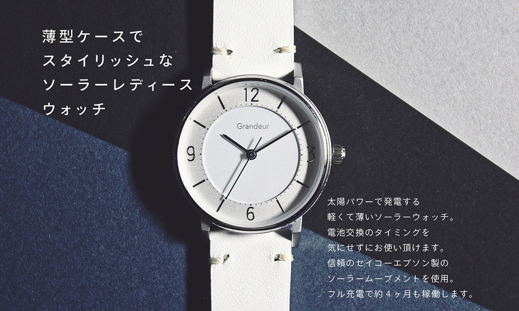 ミニマルデザインを取り入れた軽くて薄いソーラーウォッチです。