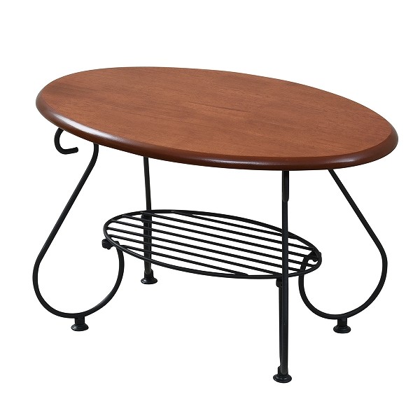 ■商品説明 楕円の形がお洒落で可愛いリビングテーブル。テーブルの下にはラックがついているので、雑誌やリモコンなどをサッと片づけることができます。■本体サイズ [外寸]幅65×奥行41×高さ40cm■組立時間(目安)(大人2人) お客様組立(10分)■キーワード コーヒーテーブル インテリアテーブル 居間 テーブル 小さいテーブル テーブル リビングテーブル ちゃぶ台 丸テーブル ラウンドテーブル レトロ レトロ調 アイアンワーク アイアン 家具 おしゃれ かわいい 可愛い 姫系 姫 インテリア 姫家具 アンティーク調 プリンセス 家具 ロマンチック アールデコ調 アールデコ家具 ヨーロピアン調 ヨーロピアン家具 木製 ブラウン