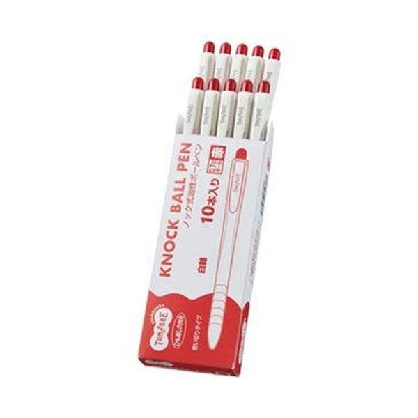 (まとめ)TANOSEE ノック式油性ボールペン0.7mm 赤(軸色:白)1セット(100本:10本×10パック)〔×5セット〕[21]