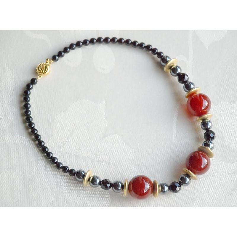 オニキス ヘマタイト 赤メノウ ショート ネックレス